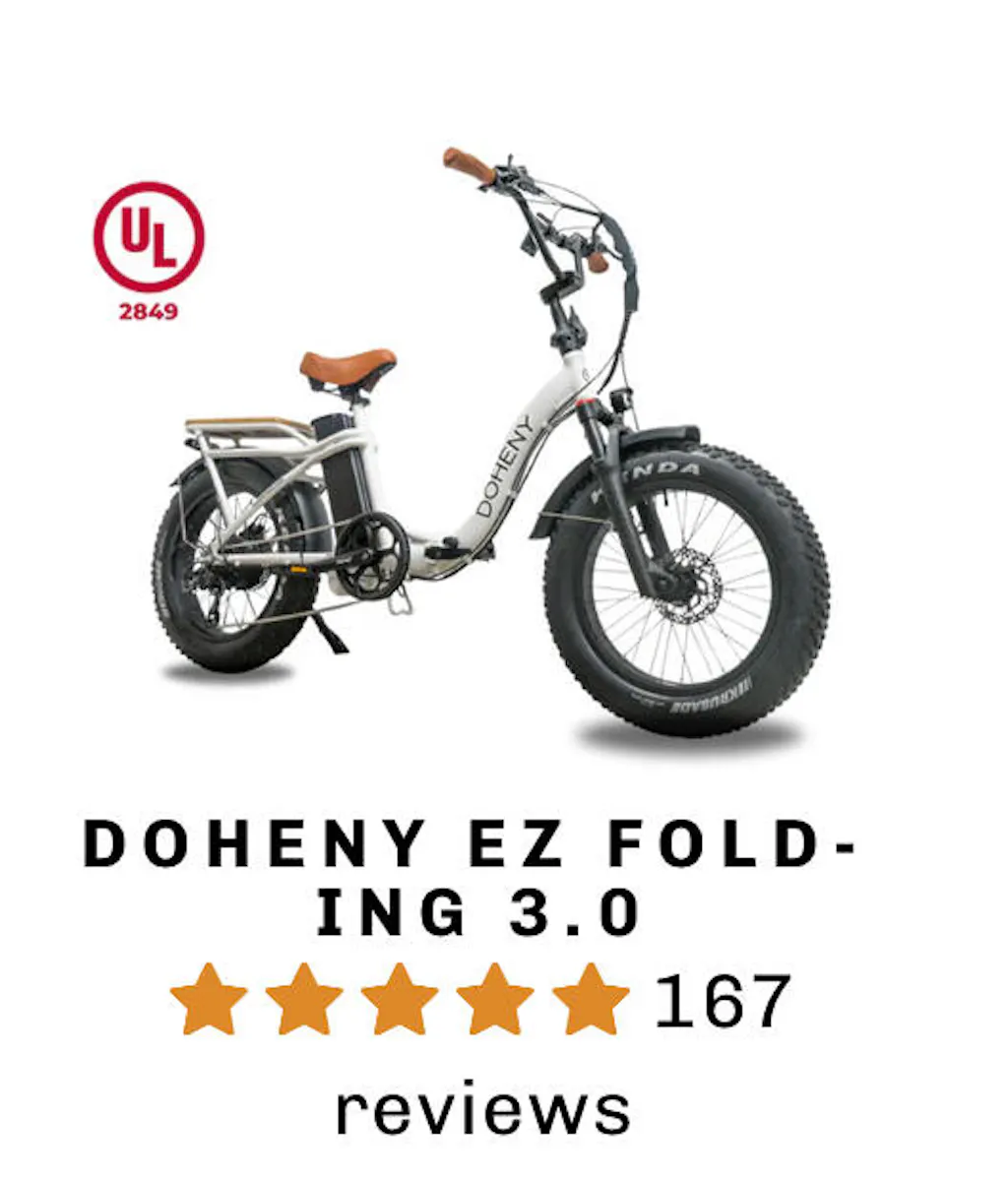 I’m so impressed with the e-bikes Doheny sells, especially the one I bought - the EX Folding 3.0